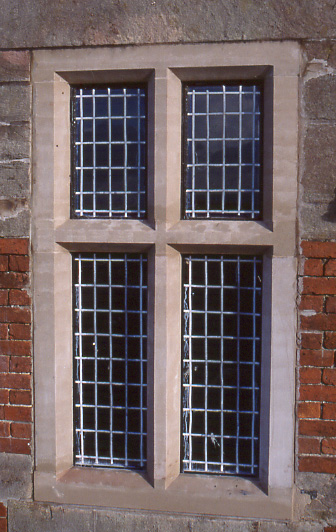 Bespoke mullioned window in a barn conversion, shown here in a composite French limestone finish.