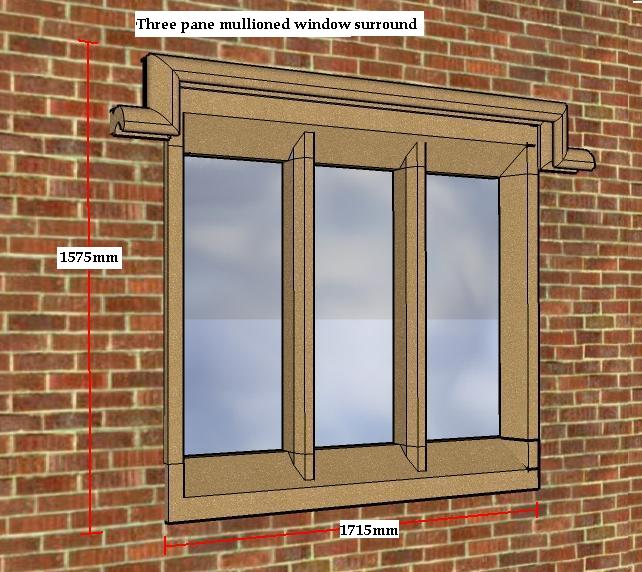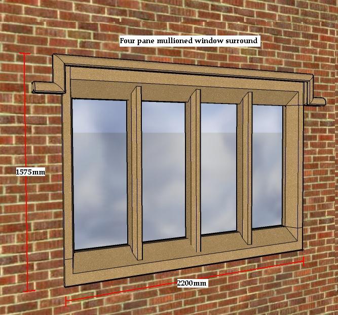 Our standard range of mullioned window surrounds are available in seven stone finishes or colour matched to existing masonry, the height can be adjusted by the length of the mullions if required with the hood moulding as shown in this diagram, optional.