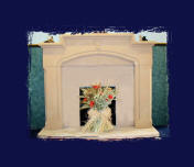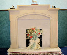 Our Kingsbury fire surround shown here with back panels and in a Bathstone finish, this is reproduction 17th century English  chimney piece, a large surround suitable for baskets or log burning stoves