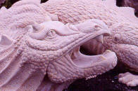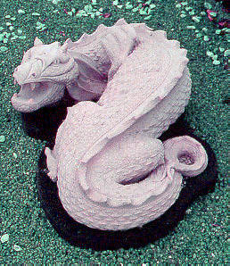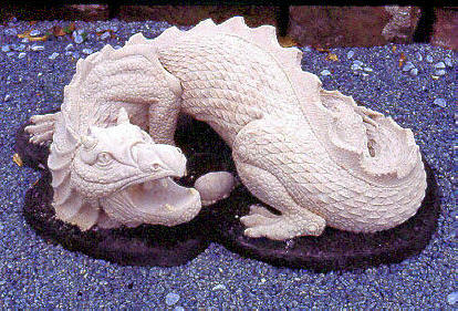 A highly detailed sculpture commissioned and sculpted in house, shown here in our innovative two-tone stone, with the dragon in a Portland stone on a Moorland base